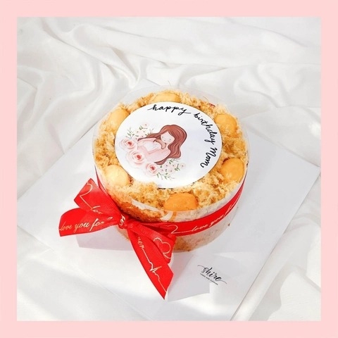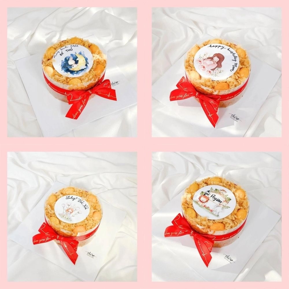 Bông lan trứng muối in hình dễ thương - Bánh sinh nhật bông lan trứng muối hai loại sốt phô mai và sốt bơ